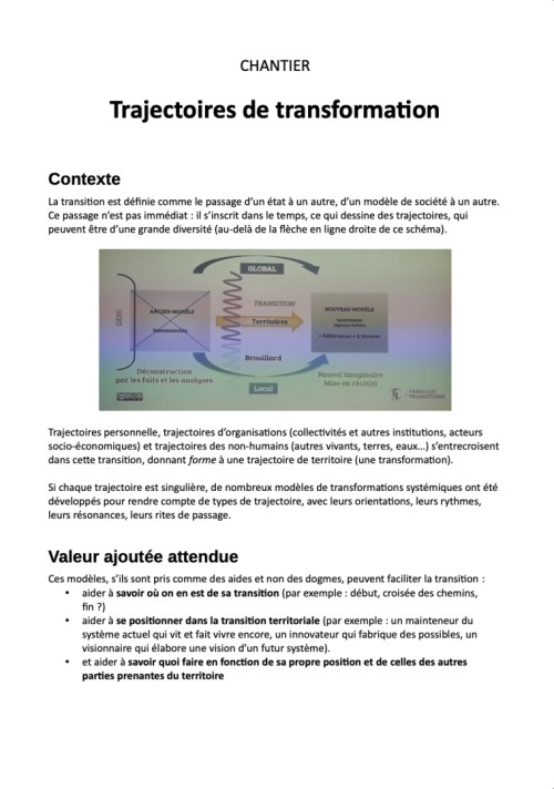 Il existe de nombreux modèles de transformation systémique (3 horizons, 2 loops, théorie U...) qui décrivent les multiples trajectoires de changement que l'on peut emprunter lors d'une transition. Ces modèles peuvent aider à se repérer dans la transition — où en suis-je ? comment se positionne les différents acteurs de mon écosystème ? — et apporter des suggestions d'actions à entreprendre. Avec ce chantier, nous invitons les accompagnateurs des transitions qui les pratiquent à échanger pour constituer un guide d'usage au service des transitions territoriales.