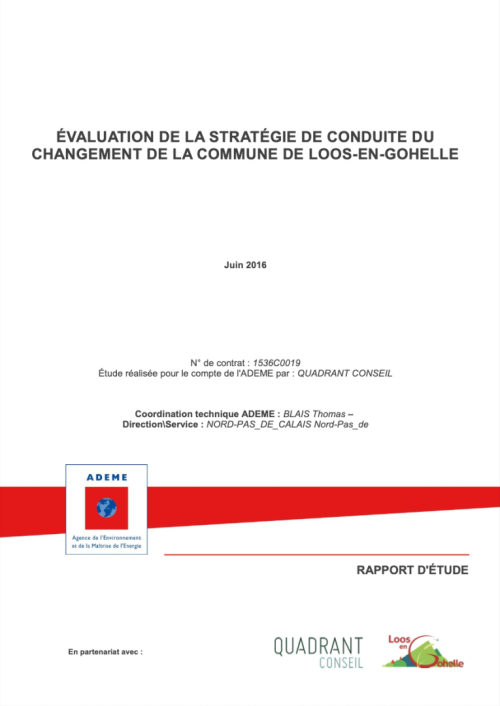 L’Ademe, au travers d’un protocole de partenariat signé le 7 octobre 2014, a identifié la ville de Loos-en-Gohelle comme étant un démonstrateur de la conduite du changement vers une ville durable. Cette démarche passe en premier lieu par une évaluation visant à caractériser cette stratégie de conduite du changement (SCC), en vérifier l’efficacité et tester sa reproductibilité.