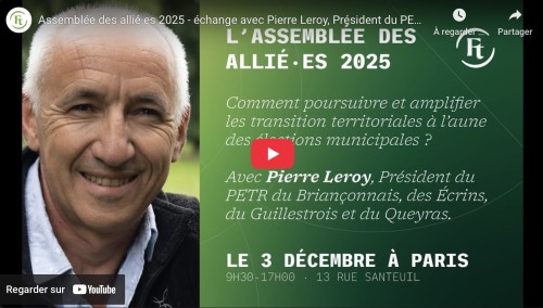 Une édition qui est revenue sur les enseignements issus des expérimentations menées au cours des dernières années et l’enjeu de la pérennisation de nos actions à l’aune des élections municipales à venir, dont les Actes paraîtront bientôt. Des perspectives illustrées par l’échange avec Pierre Leroy, Président du PETR du Briançonnais, des Écrins, du Guillestrois et du Queyras, à retrouver en replay.