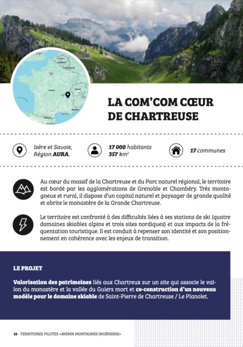 Les acteurs de la communauté de communes Coeur de Chartreuse ont choisi d’initier deux démarches à travers le projet pilote : la valorisation des patrimoines liés aux Chartreux sur un site qui associe le vallon du monastère et la vallée du Guiers mort, et la co-construction d’un nouveau modèle pour le domaine skiable de Saint-Pierre de Chartreuse / Le Planolet.