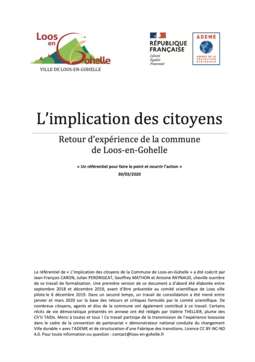 Depuis trente ans, la ville a progressivement expérimenté, développé et conceptualisé une méthodede conduite du changement pour opérer la transition du modèle minier, non soutenable, vers unmodèle de développement durable.En 2014, Loos-en-Gohelle a signé un protocole de partenariat avec l’Agence de l’environnement etde la maîtrise de l’énergie (ADEME) qui l’a reconnue « démonstrateur national de la conduite duchangement vers la ville durable ».